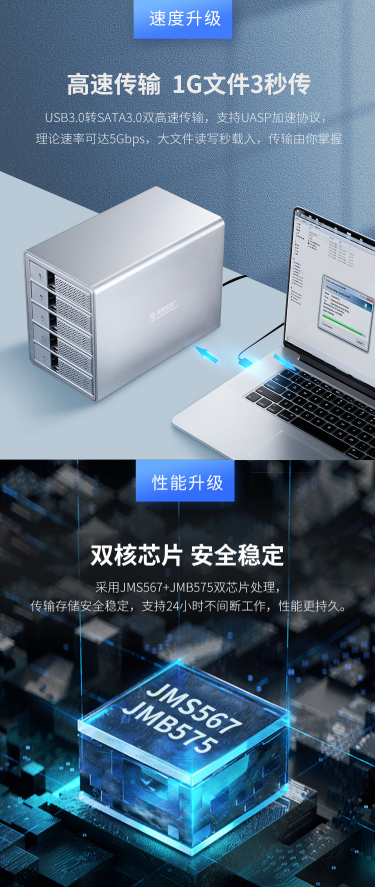 商品名称:奥睿科 ORICO 9558U3 3.5英寸 USB3.0 SATA串口 台式机外接硬盘盒子 五盘位 黑色