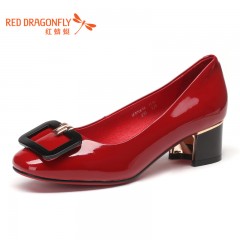 红蜻蜓 女鞋春季新款方扣通勤OL优雅女皮鞋粗跟女单鞋