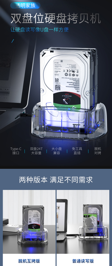 商品名称:奥睿科 ORICO 6239C3-C 移动硬盘盒底座 3.5/2.5英寸