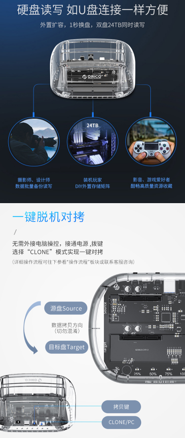 奥睿科 ORICO 6239C3-C 移动硬盘盒底座 3.5/2.5英寸