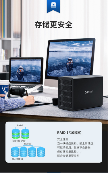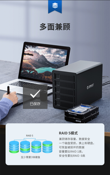 商品名称:奥睿科 ORICO 3559RU3 磁盘阵列硬盘柜 2.5/3.5英寸 五盘位(RAID) 黑色