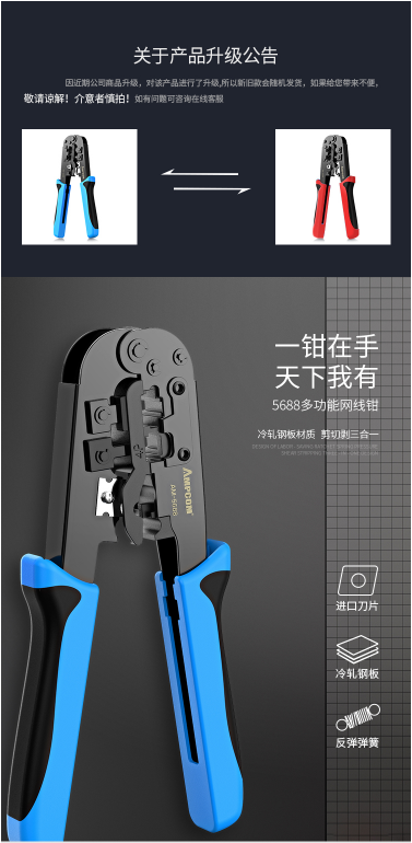 商品名称:安普康 AMPCOM 多功能网线钳工程家用电话网络水晶头压线钳AM5688