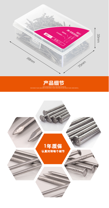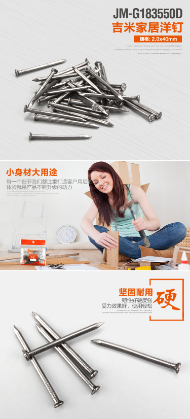 商品名称:吉米家居 JMG183550D家用洋钉子圆钢钉元钉铁钉钉子2.0*40MM约160G/约120个一盒