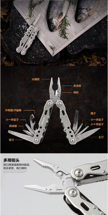 商品名称:吉米家居 JM-G12014 户外多功能工具钳组合折叠工具钳子装备板手小刀战术钳野营多用便携钳子
