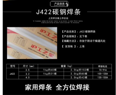 商品名称:沪工之星 J422 电焊条 碳钢焊条 2.5公斤装