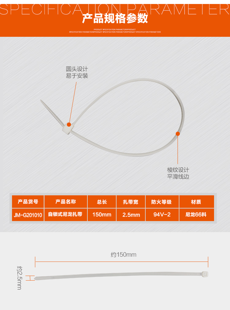 商品名称:吉米家居 JMG201010家用扎带固定塑料扎带自锁式捆线带扎线带每袋80个5袋装