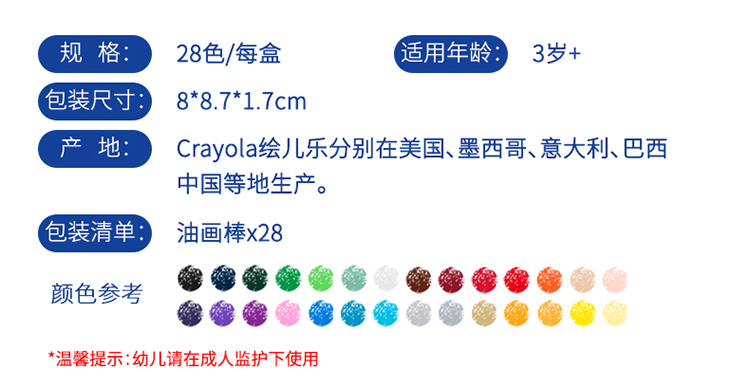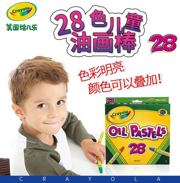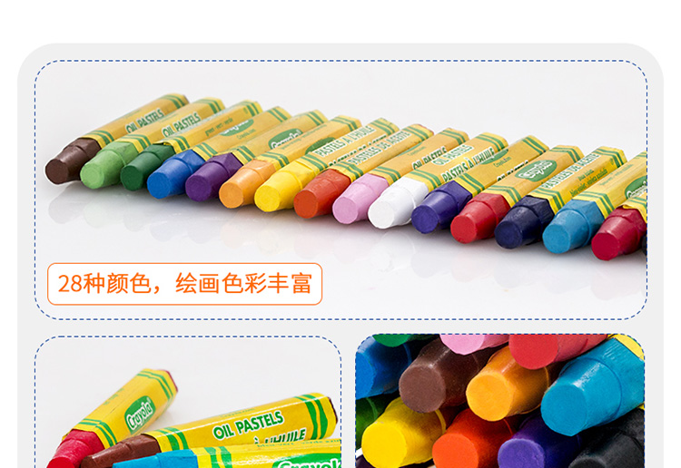 商品名称:绘儿乐 CRAYOLA 28色油画棒 美国进口 丝滑蜡笔 儿童绘画画笔工具 彩色蜡笔套装学生绘画练习 52-4628
