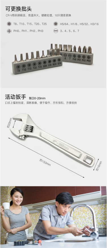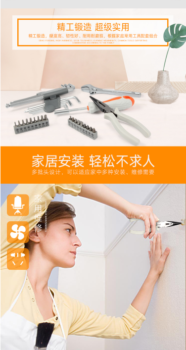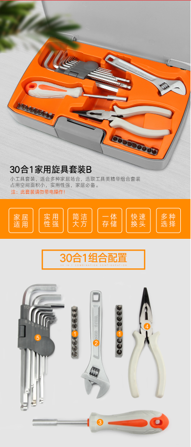 商品名称:吉米家居 JM-GMT30 30件家用旋具B套装 多功能螺丝批组套尖嘴钳内六角活动扳手旋具套装拆机工具 EASY系列