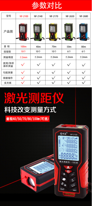 商品名称:精明鼠 NOYAFA NF-2140 手持式40米激光测距仪 (10个操作按键)