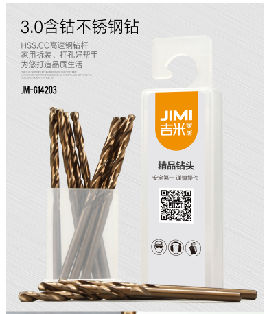 商品名称:吉米家居 JM-G14204含钴钻头手电钻冲击钻头金属不锈钢高速钢麻花钻电动工具配件4MM10支装