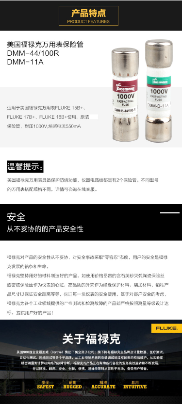 福禄克 FLUKE 保险管 安培电流档保险丝熔断丝万用表原装DMM-11A