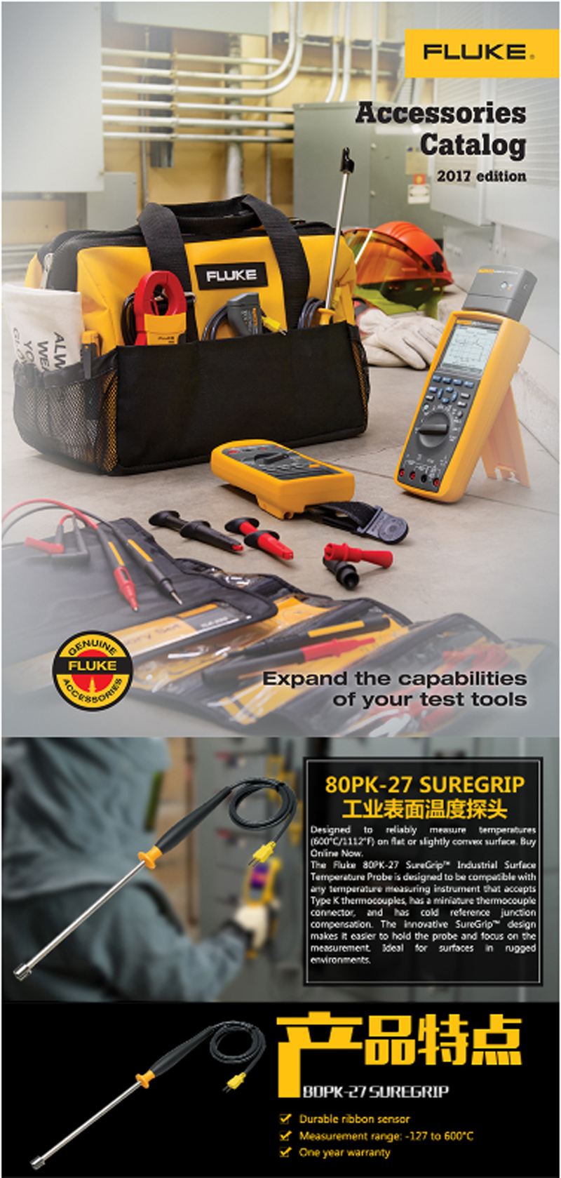 ☆福禄克 FLUKE 80PK-27 福禄克 FLUKE 80PK-27工业表面温度探头 万用表测温探头