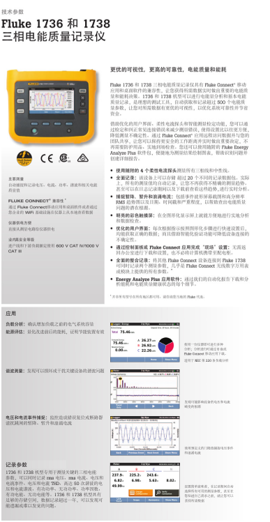 商品名称:福禄克 FLUKE F1738三相电能质量记录仪