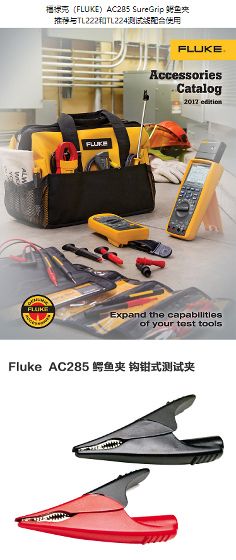 ☆福禄克 FLUKE AC285 SUREGRIP 鳄鱼夹万用表测试表夹推荐与TL222和TL224测试线配合使用