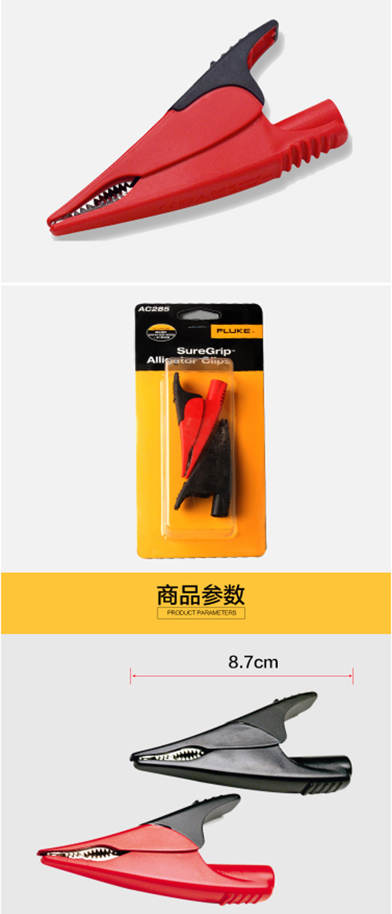 商品名称:☆福禄克 FLUKE AC285 SUREGRIP 鳄鱼夹万用表测试表夹推荐与TL222和TL224测试线配合使用