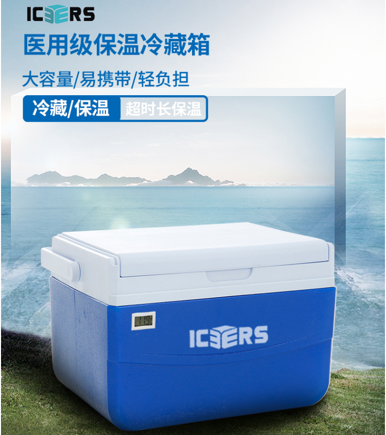 艾森斯 ICERS 保温箱冷藏箱车载保鲜箱胰岛素医用冷藏箱冷热二用送冰袋5升带温度计显示款蓝白色