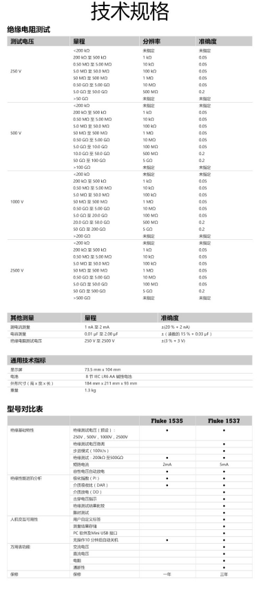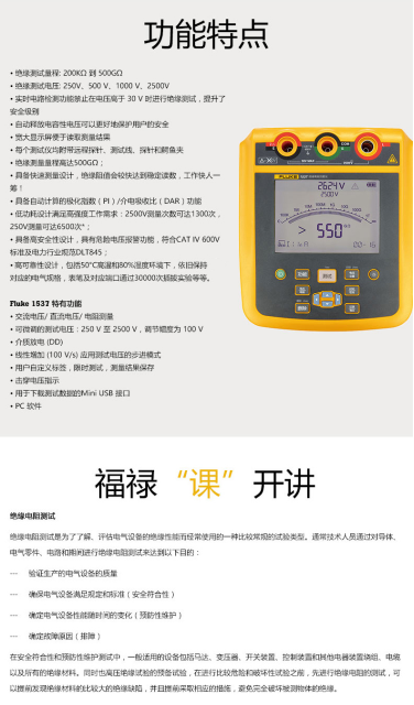 商品名称:福禄克 FLUKE 1537 2500V 高压绝缘电阻测试仪 兆欧表