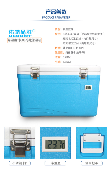 商品名称:佑酷品胜 60升 带温度大保温箱 外卖药品冷藏箱 车载户外野餐烧烤钓鱼箱 可坐人蓝色