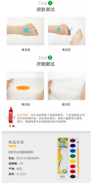 商品名称:绘儿乐 Crayola 8色可水洗固体颜料学生美术用品绘画文具油画练习工具53-0525