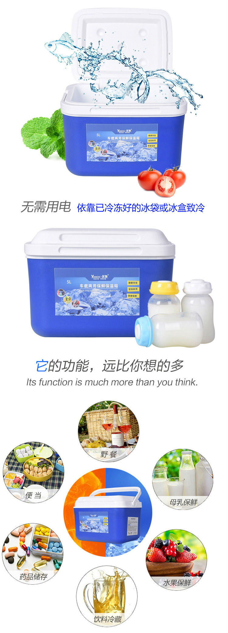 商品名称:优驰 YOOCH 5升保温箱车载冰箱冷藏箱无电冰箱送3个冰袋冷藏保温、健康环保