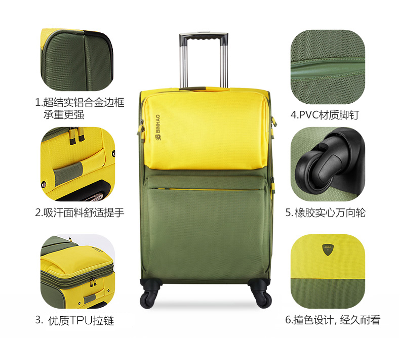商品名称:宾豪 行李箱防水尼龙拉杆箱 22英寸黑配灰 0598TTB
