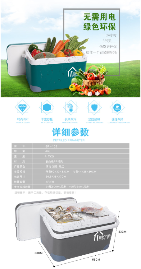 商品名称:膳尔斯 SHANERSI 保温箱冷藏箱 车载便携保鲜箱 背奶箱 海钓箱 家用户外自驾冷藏保鲜 送冰袋 40L 枣红色