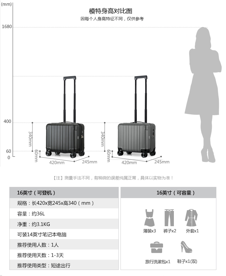 商品名称:汉客 防刮细点纹拉杆箱万向轮 16英寸深灰色 H9965