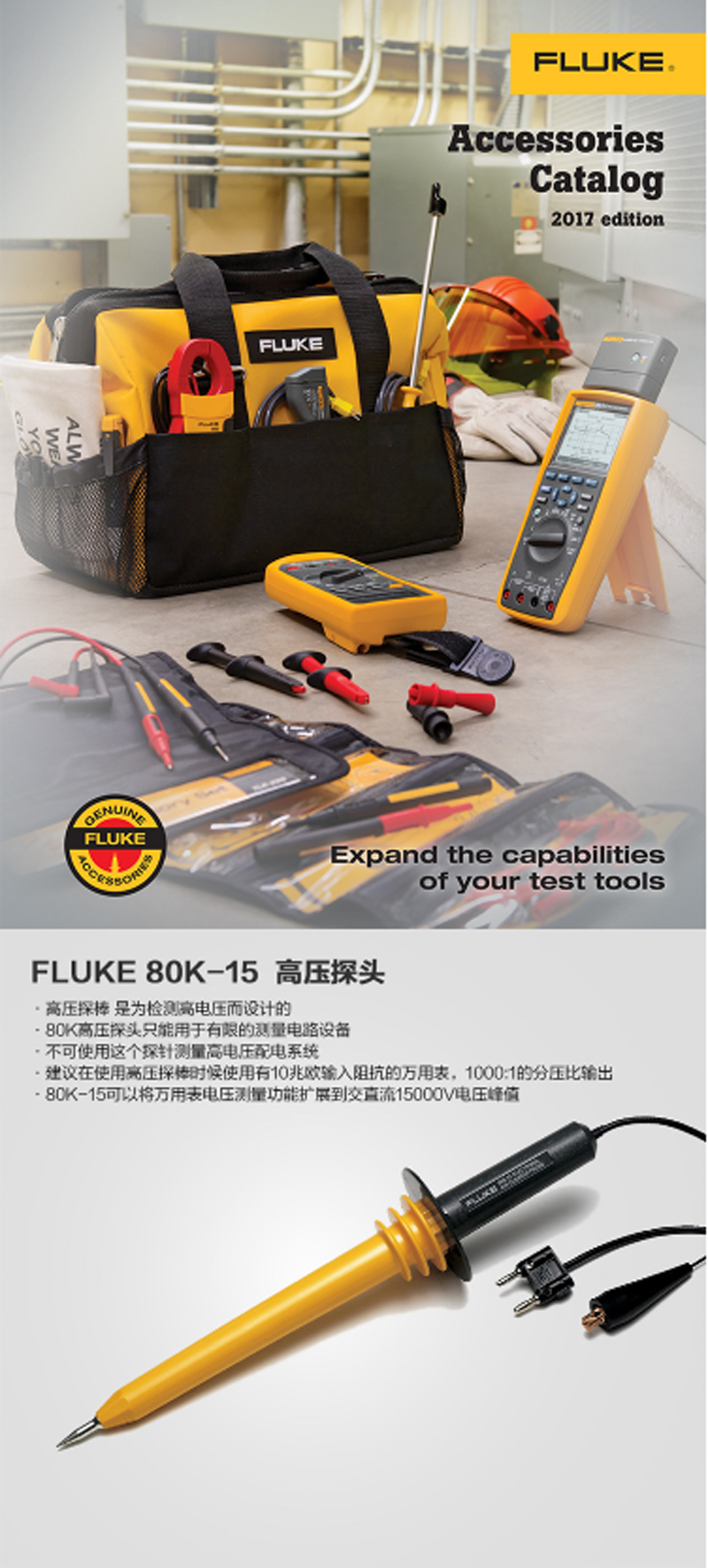 ☆福禄克 FLUKE 80K-15 高压探头可将数字万用表的量程提高至18000V峰值