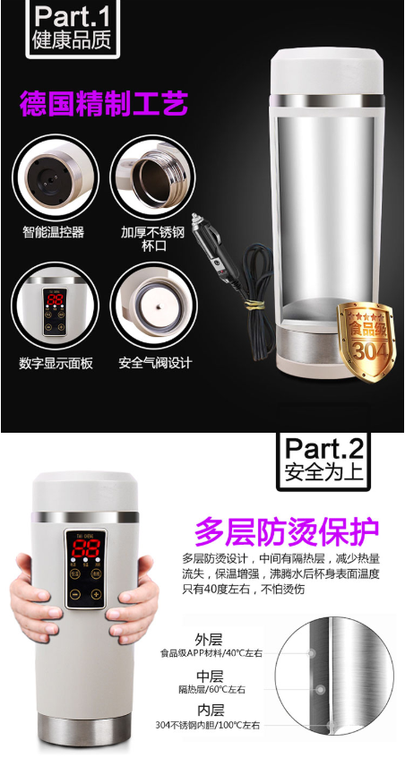 商品名称:泰澄 TAI CHENG 车载电热杯12V汽车用烧水杯加热杯烧水壶旅行便携保温热水器 C07 粉色