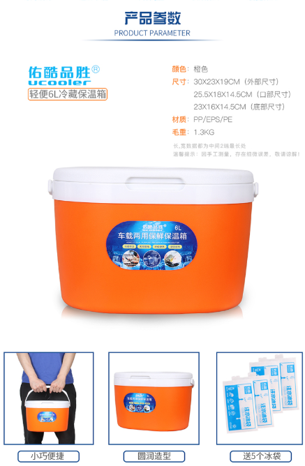 商品名称:佑酷品胜 6L保温箱冷藏箱椭圆便携保温箱母乳保鲜箱血液医药保冷箱车载野餐烧烤箱橙色