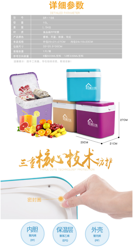 商品名称:膳尔斯 SHANERSI 保温箱冷藏箱 车载便携保鲜箱 背奶箱 海钓箱 家用户外自驾冷藏保鲜 送冰袋 10L 天蓝色