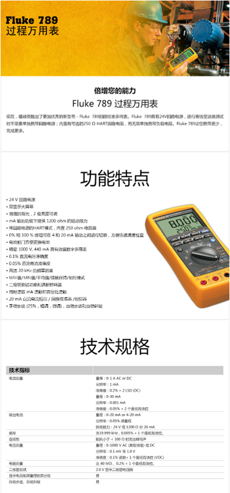 ☆福禄克 FLUKE F789多功能过程万用表 效检仪 电流 电压 高精信号输出输入 仪器仪表