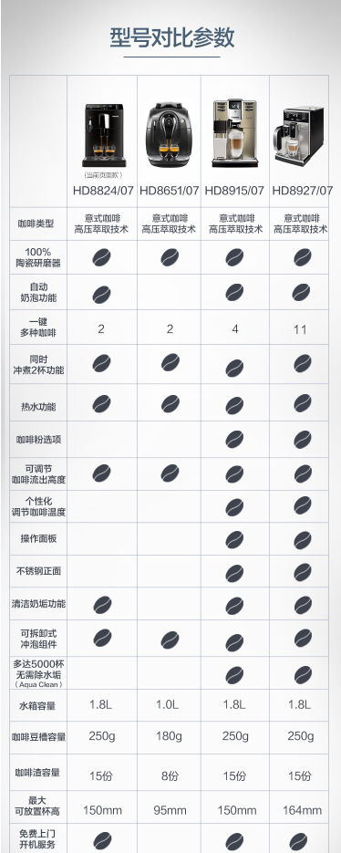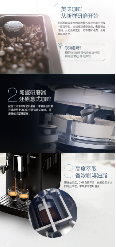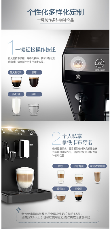 商品名称:飞利浦 PHILIPS 咖啡机 意式家用商用型全自动现磨豆带自动奶泡器 HD8824/07