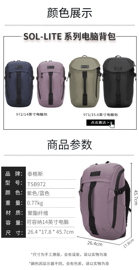 商品名称:泰格斯 TARGUS 972 休闲户外双肩包 14英寸 紫色