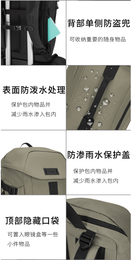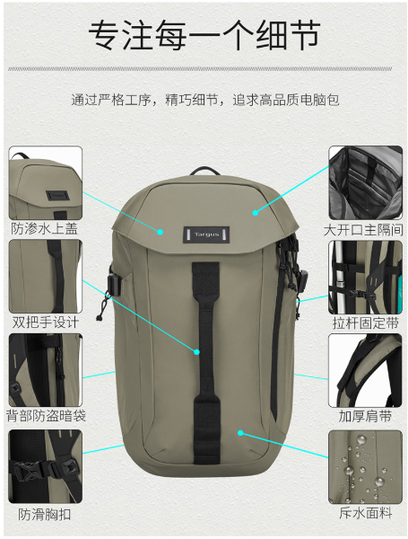 商品名称:泰格斯 TARGUS 971 防滑胸扣大容量书包 15.6英寸 黑色