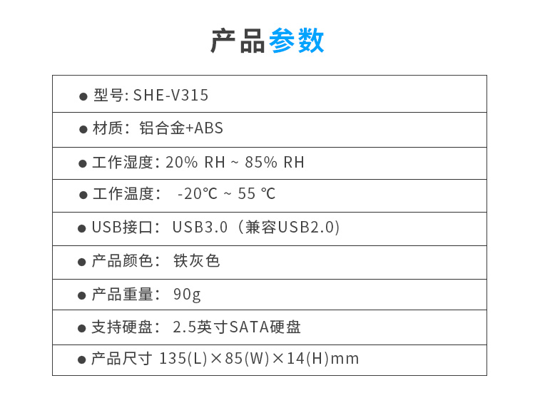 商品名称:飚王 SSK SHE-V315 2.5英寸移动硬盘盒USB3.0接口 SATA串口 SSD固态硬盘笔记本硬盘外置盒 金属铁灰