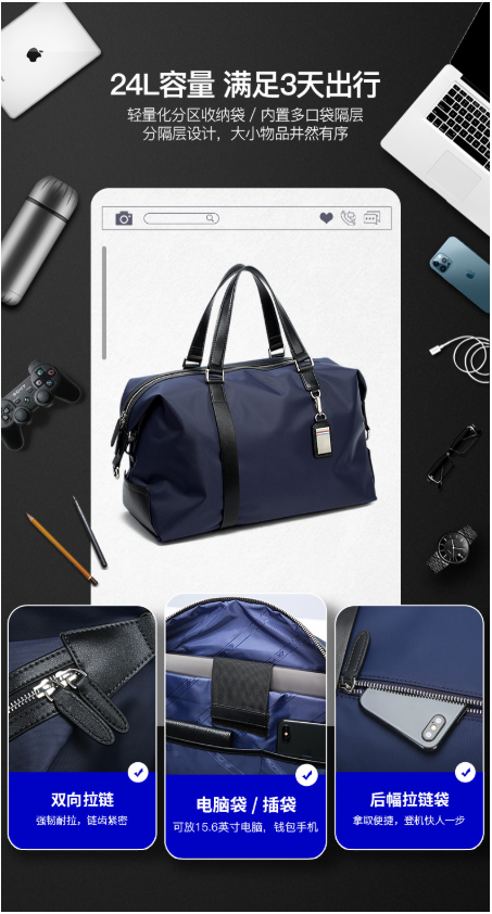 商品名称:博牌 BOPAI 32-01732 手提旅行包 高26CM×宽44CM×厚18CM 蓝色