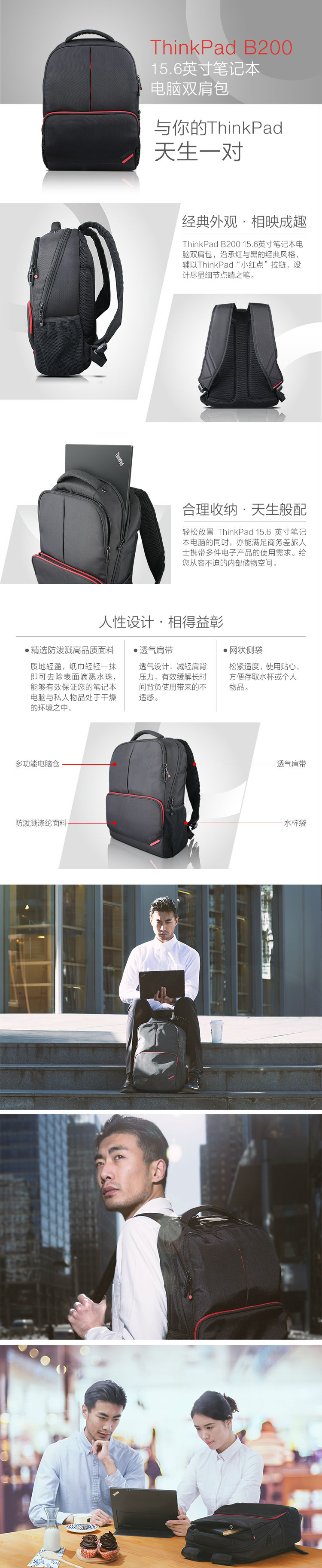 商品名称:THINKPAD 4X40M67352 双肩包 15.6英寸 黑色