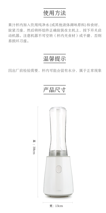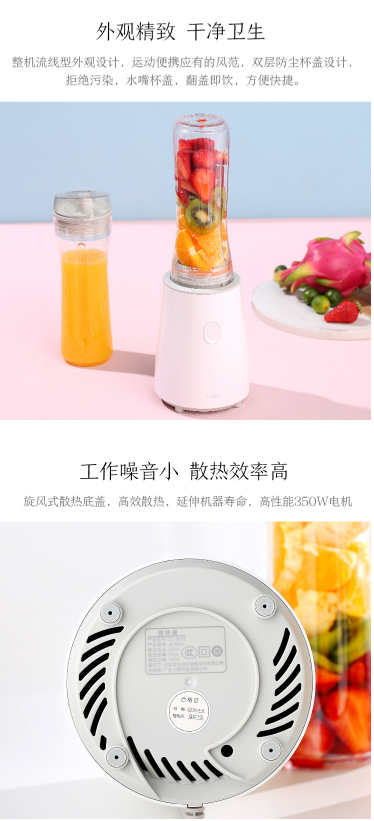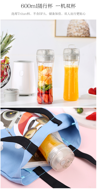 商品名称:京造 榨汁机料理机 家用便携式 双杯 快速料理 可搅拌碎冰 白色