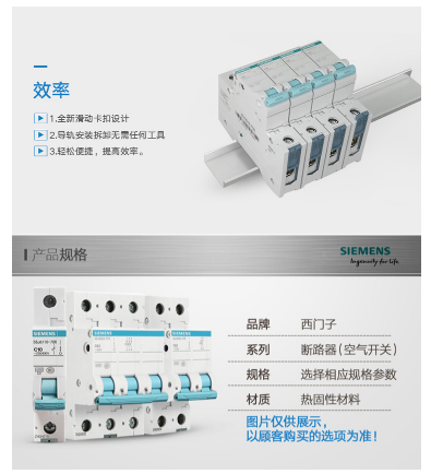 商品名称:西门子 SIEMENS 5SJ61637CR标准型小型断路器1P单级63A家用电源空开