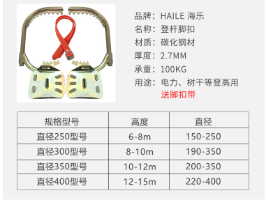商品名称:海乐 HAILE JK-400A 电工脚扣 木杆脚扣400型 12-15M线杆用 直径220-400MM可调