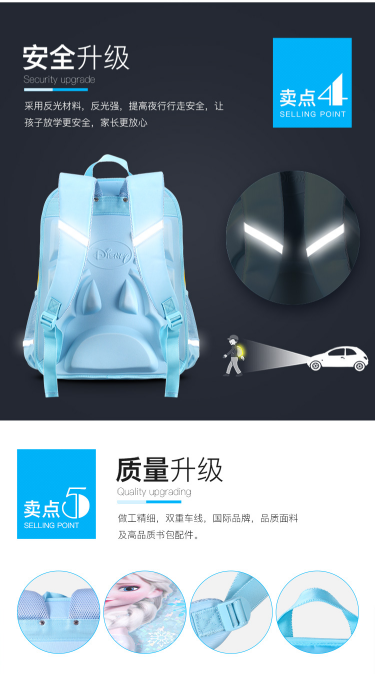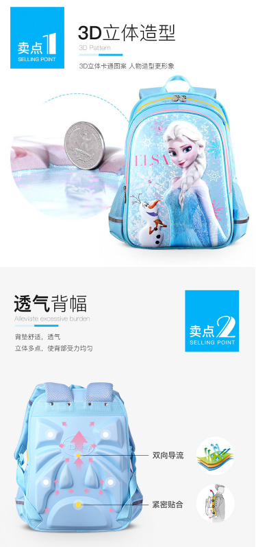 商品名称:迪士尼 DISNEY FP8028B 冰雪奇缘书包 4-6年级 粉红