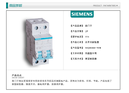 商品名称:西门子 SIEMENS 5SJ62407CR标准型断路器2P40A双进双出总开关