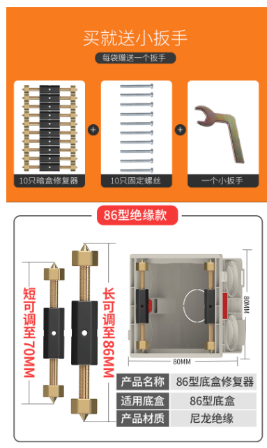 商品名称:捷诺立 JNL N13106 118型暗盒修复器开关 绝缘款 一套10根