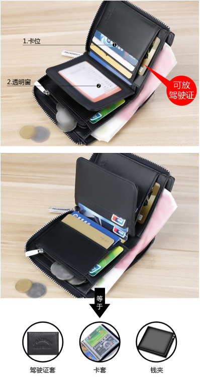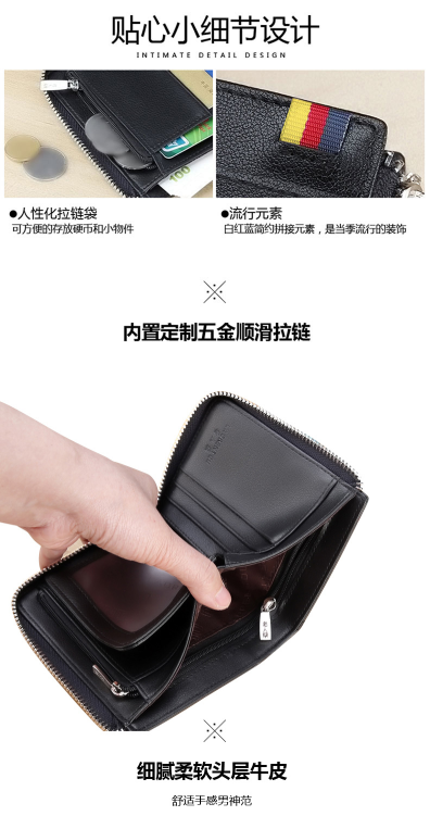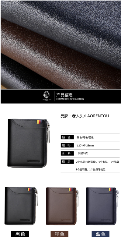 商品名称:老人头 LAORENTOU JD303206J0ZY05L5A 男士 钱包 短款 拉链 黑色