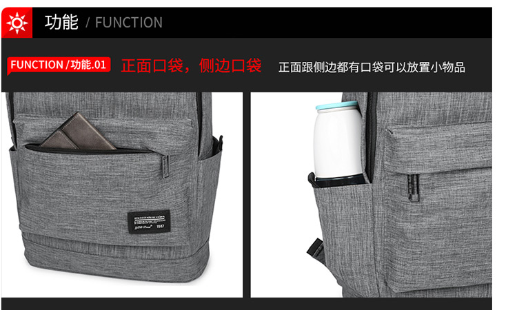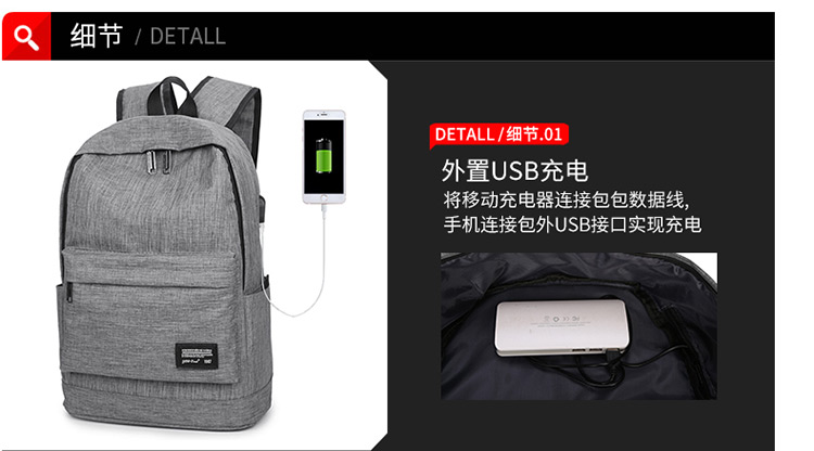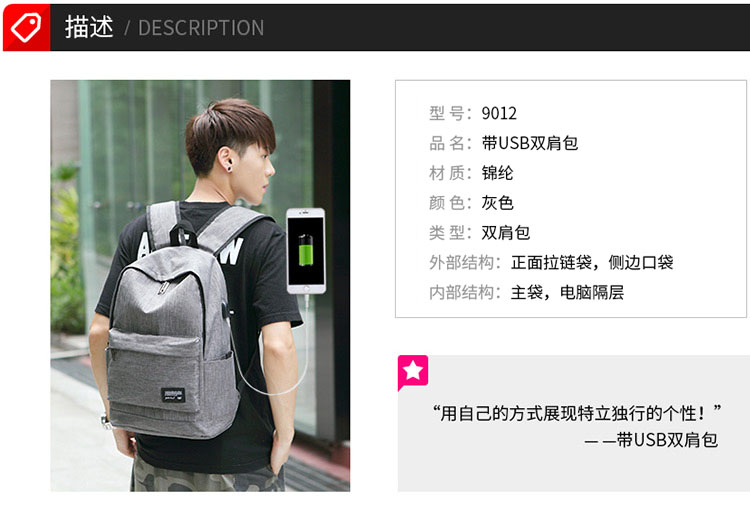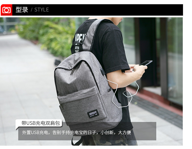 商品名称:国产 书包 男包潮流学院风双肩休闲背包9012灰色