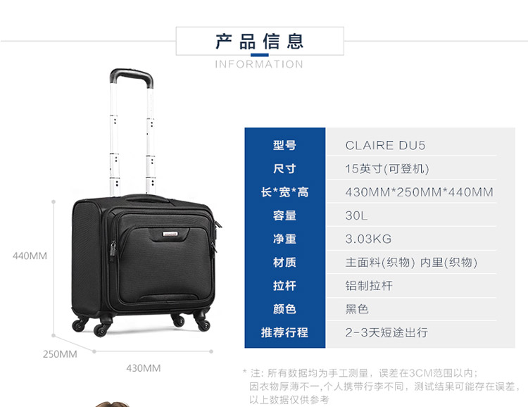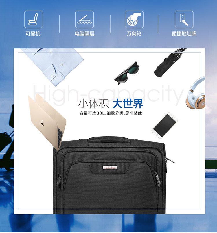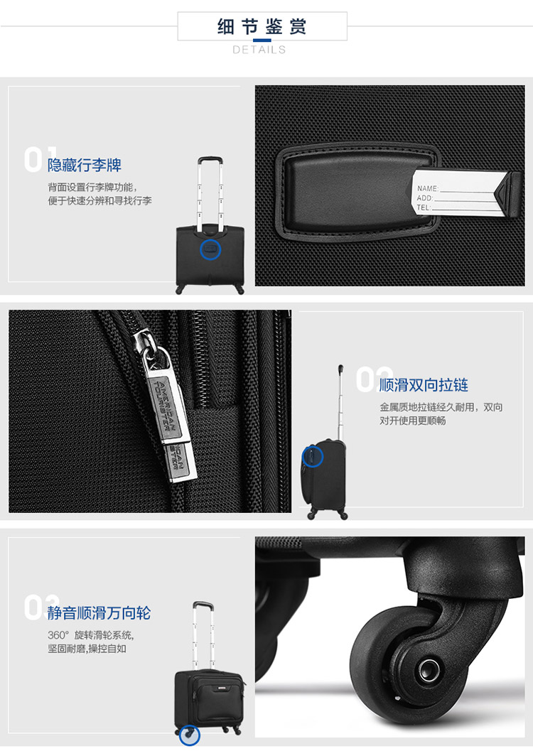 商品名称:美旅 AMERICANTOURISTER DU5×09001 拉杆箱 拉链 织物 万向轮 双杆 15英寸 黑色