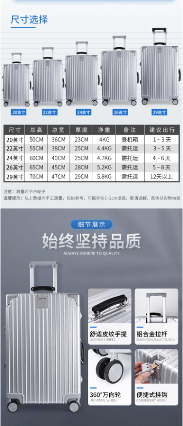 商品名称:奢选 SHEXUAN 7029 拉杆箱 铝框 PC 万向轮 双杆 24英寸 尊贵黑