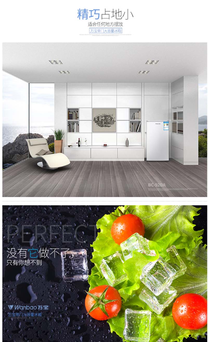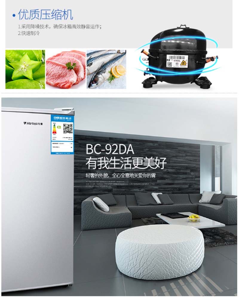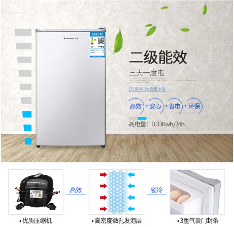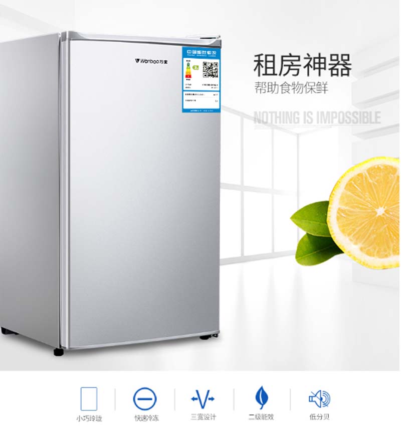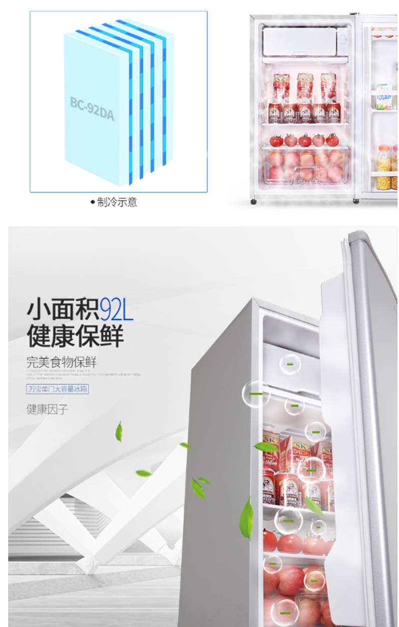 商品名称:万宝 WANBAO 92升单门保鲜小冰箱冷藏微冻节能静音环保内胆银色BC-92DA