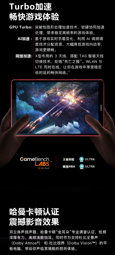 商品名称:华为 HUAWEI M6 (ANDROID 9.0/6GB/128GB/8.4英寸) 平板电脑 WIFI版 幻影蓝